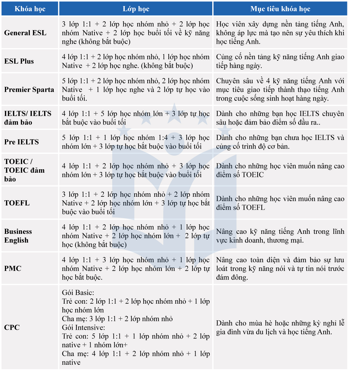 Trường Anh ngữ CPILS đa dạng với các khóa học tiếng Anh dành cho các học viên. Nổi bật với mô hình học tập Sparta nghiêm khắc và áp lực cao mang lại hiệu quả học tập tốt nhất cho học viên theo học tại trường.