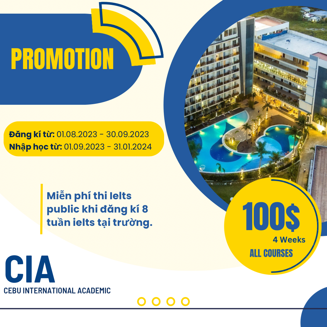 Với sự cam kết về chất lượng và tầm nhìn đổi mới, Cebu International Academy (CIA) tiếp tục là điểm đến lý tưởng cho những người muốn nâng cao trình độ tiếng Anh và trải nghiệm cuộc sống tại một trong những địa điểm đẹp nhất của Philippines. CIA không chỉ là một trường học mà còn là một cộng đồng học tập và sự phát triển cá nhân.