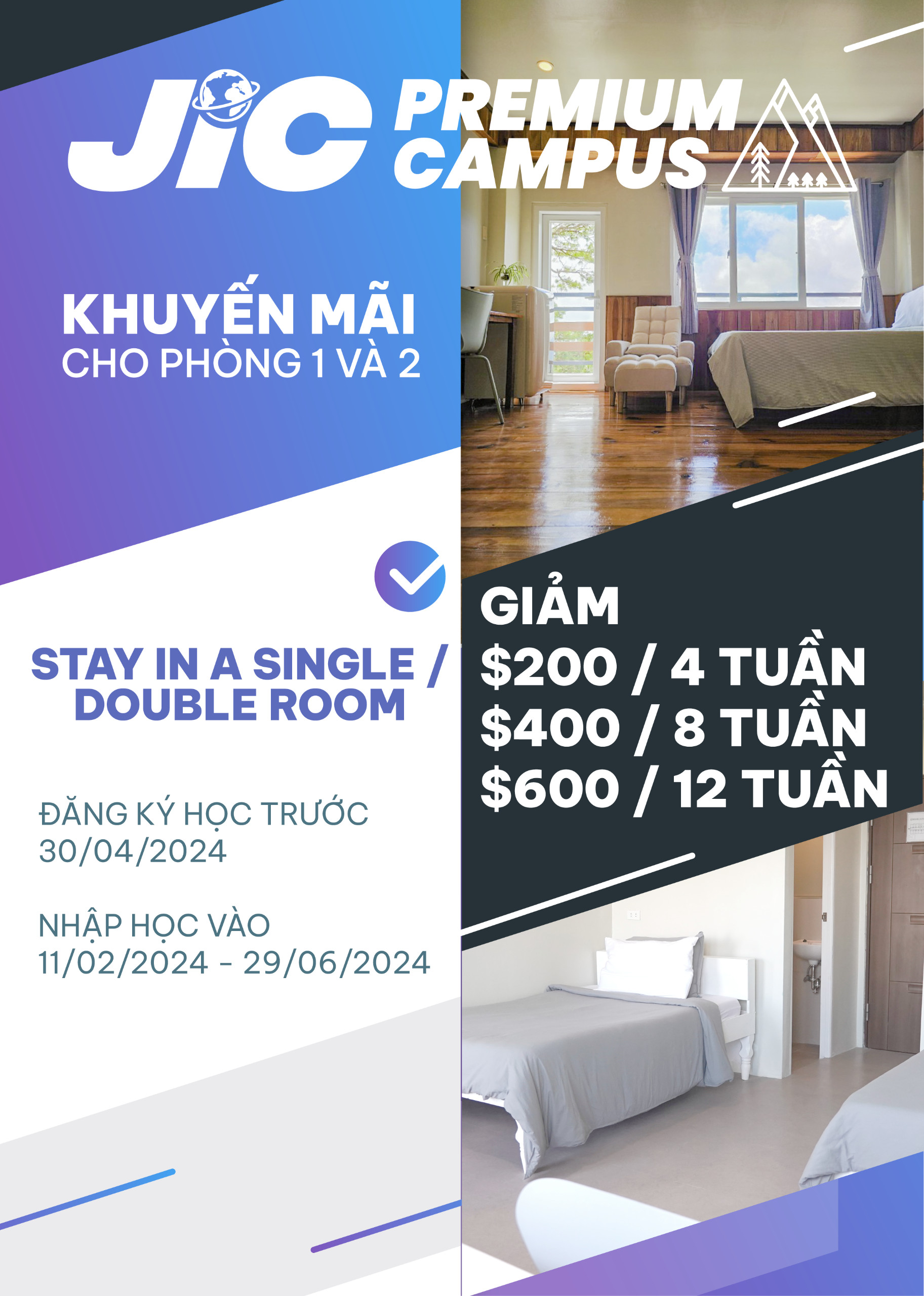 Anh ngữ JIC là một trong những trường lâu đời tại thành phố Baguio, tính đến nay trường đã có 18 năm thâm niên kinh nghiệm. Campus thứ 2 của trường là JIC Green Valley Premium được biết đến là campus xanh, sang trọng, cơ sở vật chất hiện đại. Đầu năm 2024 này, JIC Premium campus có những học bổng HOT dành riêng cho các bạn học viên Việt Nam.