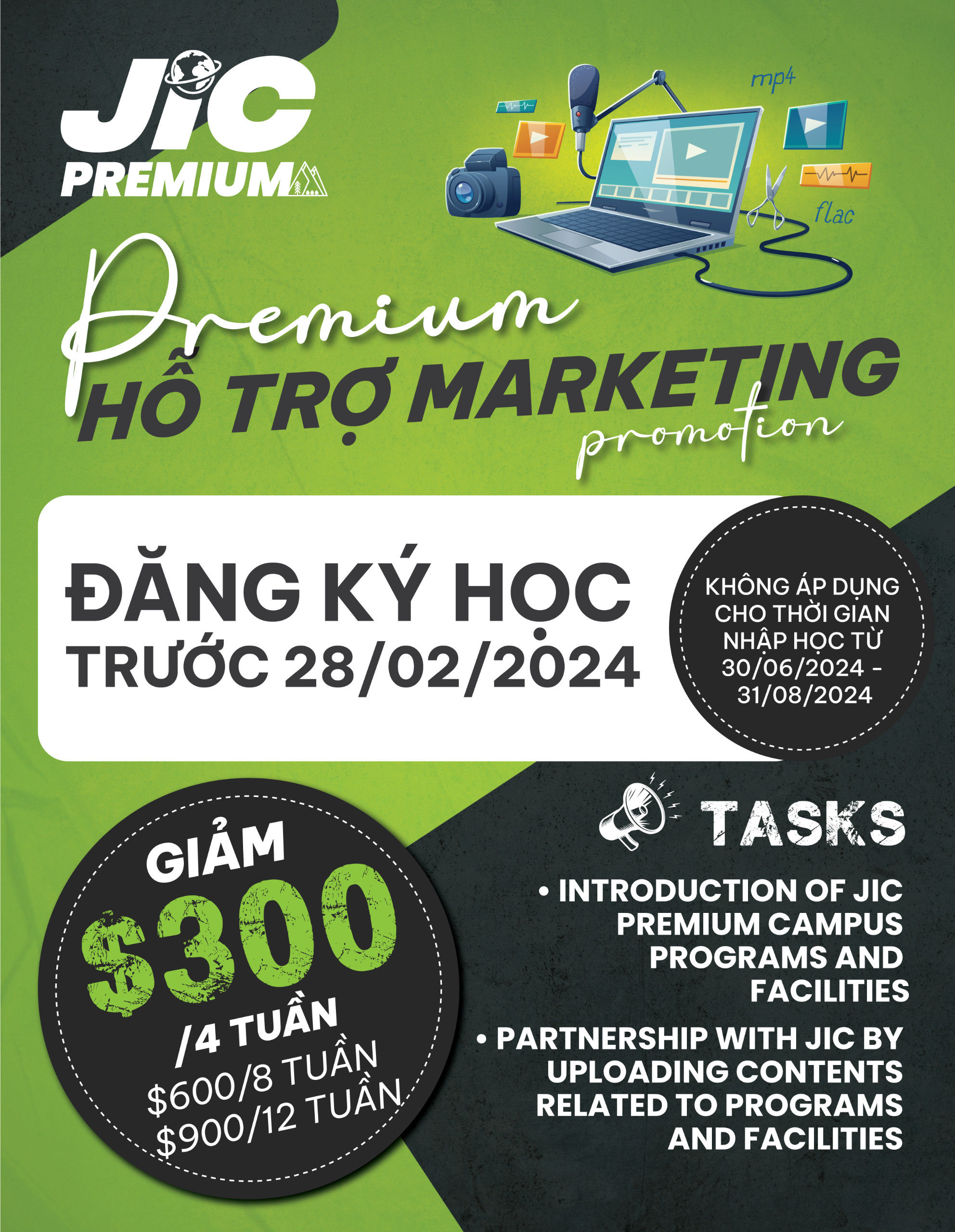 - Hỗ trợ bộ phận Maketing của trường xuất bản các video về cơ sở vật chất, chương trình học của JIC