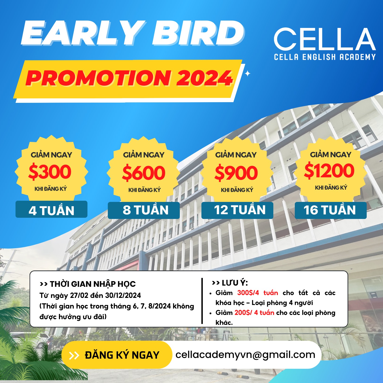 Để tạo cơ hội cho nhiều bạn học viên Việt Nam học tập tại Cella, nhà trường đã có chương trình học bổng hấp dẫn lên đến $1,200.