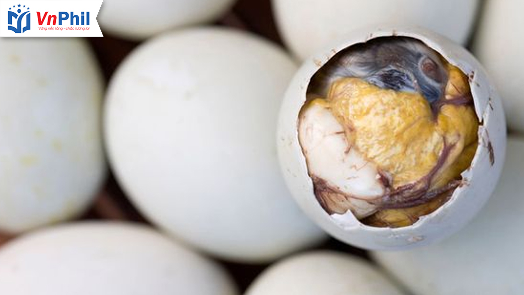 Đây chính là món trứng vịt lộn mà chúng ta thường ăn. Cũng giống như ở Việt Nam, balut là món ăn đường phố nổi tiếng ở Philippines. Khi thưởng thưởng Balut, người Philippines sẽ ăn cùng một ít giấm rưới lên trên bề mặt quả trứng.