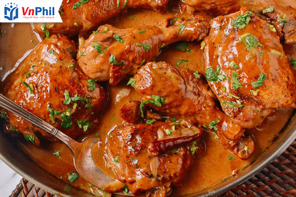 Khi gia vị thấm đều, gà sẽ được mang đi hầm sau đó rán vàng. Màu nâu vàng bắt mắt và hương vị đậm đà sẽ tạo nên sự kích thích cả về thị giác thị giác lẫn vị giác của món gà Adobo.