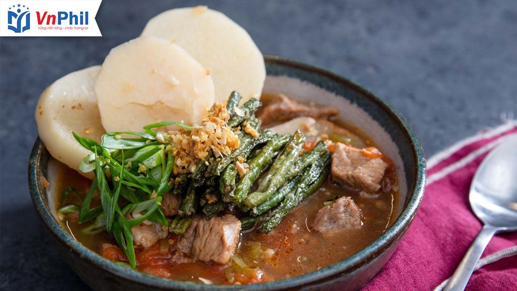 Đây là món ăn mang phong cách Damba không thể bỏ qua khi du học tiếng Anh tại Philippines. Để nấu Bistek Tagalog, người Philippines sẽ đem thịt bò tẩm ướp kỹ lưỡng và áp chảo kết hợp với hành tây để cho ra một hương vị tuyệt vời.