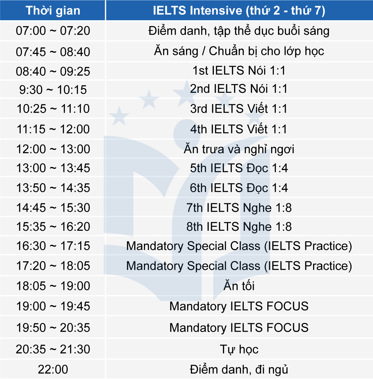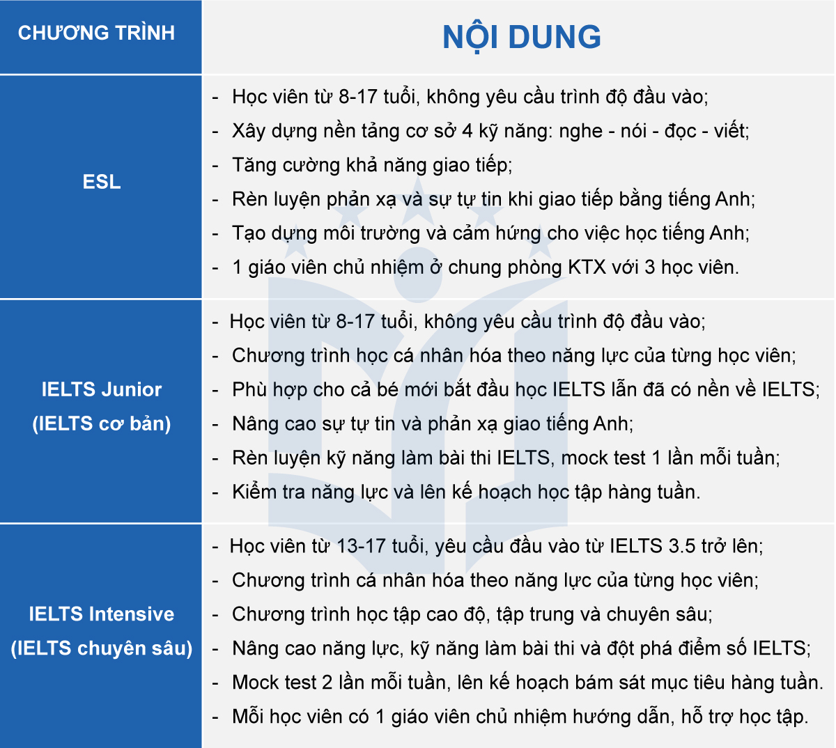 - Có đội ngũ quản lý kiểm tra tình trạng học viên, kiểm tra nhật ký hàng ngày và dọn phòng hàng ngày.
