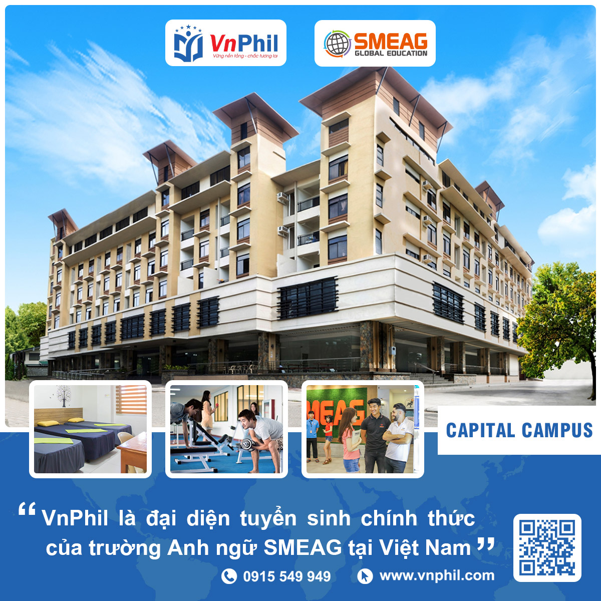 SMEAG Capital Campus được xây dựng vào năm 2012 tại trung tâm thành phố Cebu, đây là campus có cơ sở vật chất tốt song hành cùng chất lượng đào tạo hàng đầu tại Philippines. Ngoài ra, cơ sở Capital còn là địa điểm khảo thí IELTS chính thức được ủy quyền bởi hội đồng Anh.