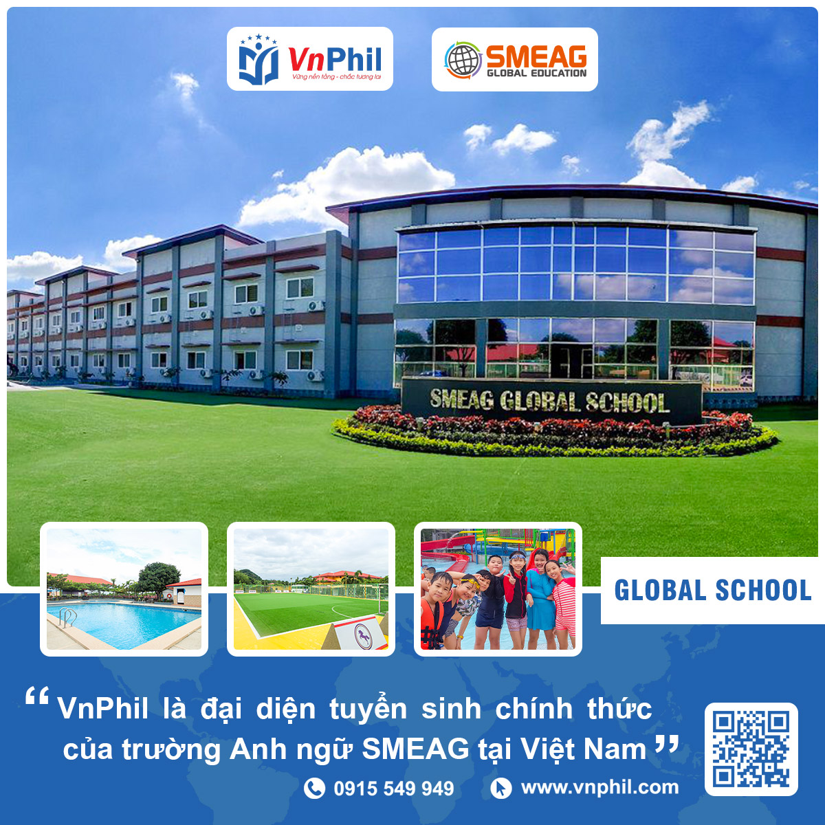 SMEAG Global School là trường THPT quốc tế chuyên dạy cấp 2, cấp 3 và dự bị đại học. Trường được xây dựng vào năm 2015 trên quỹ đất rộng trên 20.000m² tại Tarlac với đầy đủ trang thiết bị và tiện nghi phục vụ cho công tác dạy và học: thư viện, phòng vi tính, student lounge, hồ bơi, sân futsal, sân bóng rổ, ký túc xá, canteen…