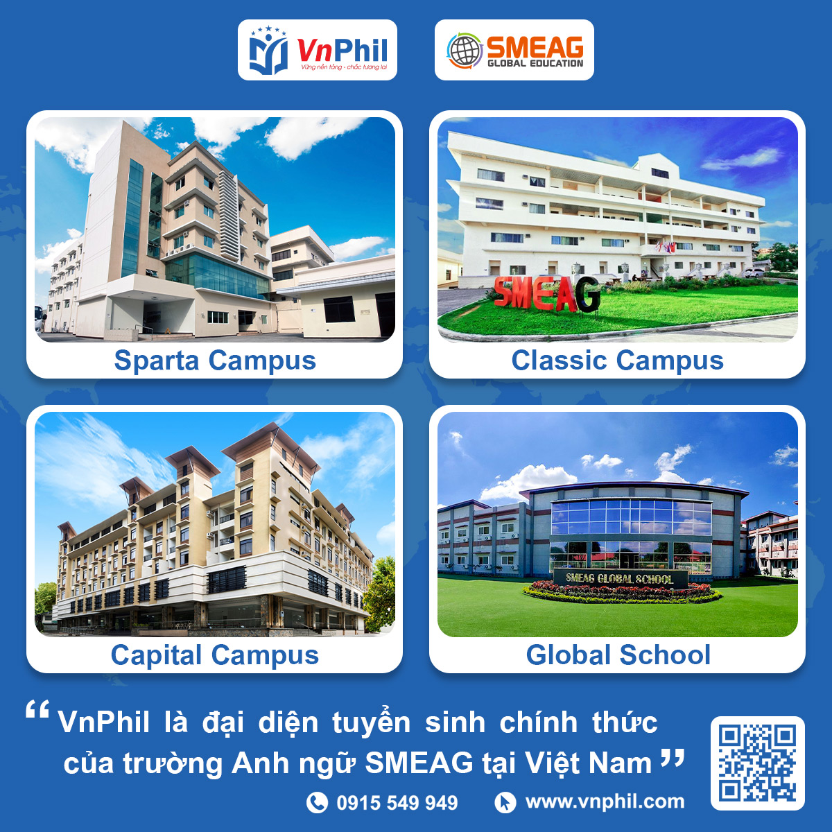 Được thành lập từ năm 2006, trải qua gần 20 năm không ngừng phát triển. Đến nay, SMEAG được biết đến là học viện quốc tế dạy tiếng Anh lớn nhất ở Philippines với quy mô lên đến 1.200 học viên.